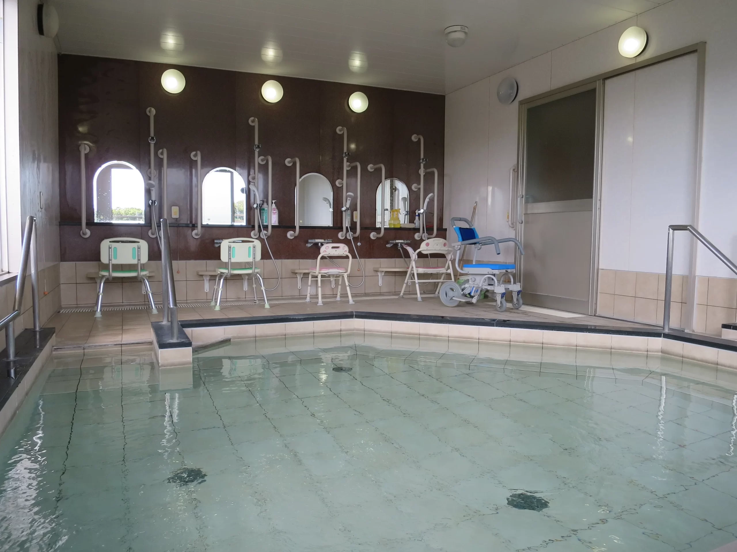 介護が必要な方も肩まで浸かれる安心な入浴装置も整えております。