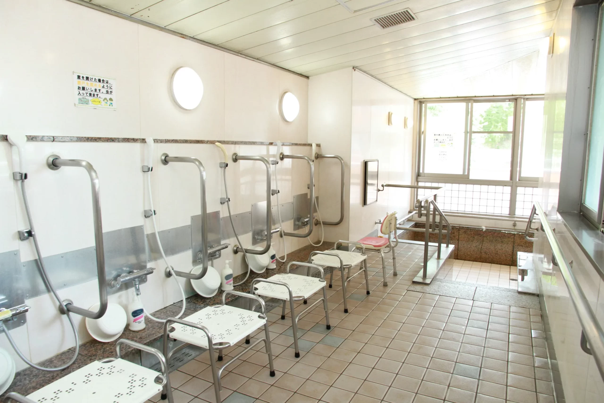 手すりやシャワーチェアを設置し、安全面に配慮した浴室環境を整えています。